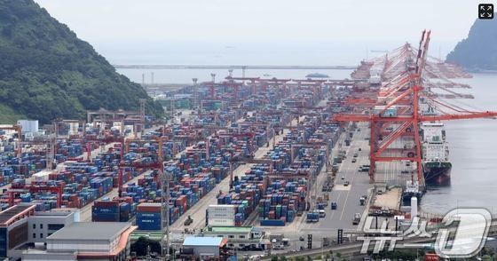 지난 8월 부산항 신선대부두 야적장에 컨테이너가 가득 쌓여 있는 모습자료사진. 2025.8.11/뉴스1 ⓒ News1 윤일지 기자한미 관세 협상…