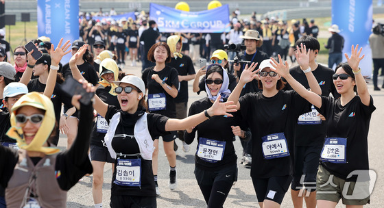 14일 인천 중구 BMW 드라이빙센터에서 열린 대한항공·아시아나항공 객실승무원 화합 기부 러닝 행사 ‘WE RUN’에서 참가자들이 힘차게 출발하고 있다. 대한항공과 아시…