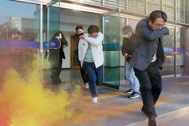 [OSEN=홍지수 기자] 우석대가 29일 전주캠퍼스 체육관 일원에서 완주소방서와 합동소방훈련을 진행했다. 이번 훈련은 화재 등 각종 재난 상황에서 신속하고 체계적인 대응 능력을 강