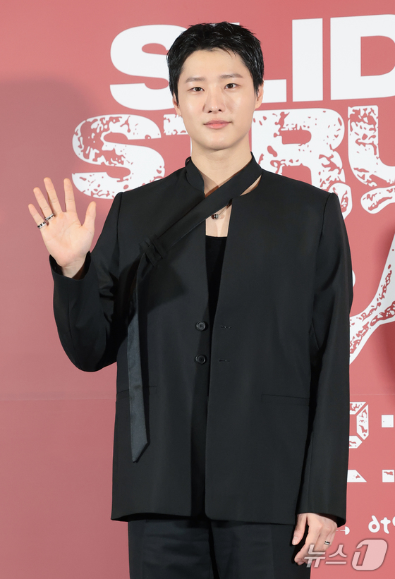 가수 우즈WOODZ가 20일 오후 서울 용산구 CGV용산아이파크몰에서 열린 영화 ‘슬라이드 스트럼 뮤트’ 언론시사회 및 기자간담회에 참석해 포즈를 취하…
