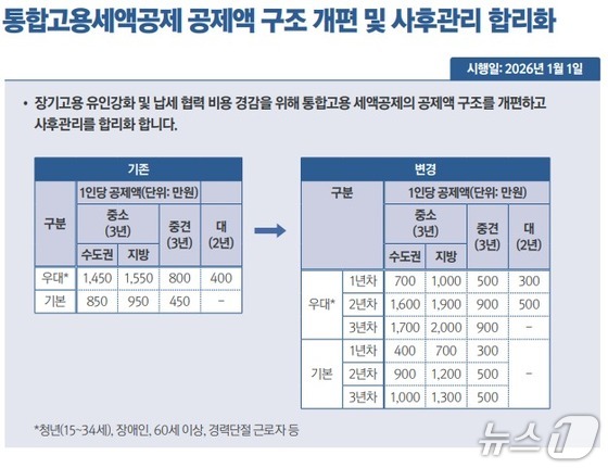 기획재정부 제공정부가 내년부터 고용 창출에 어려움을 겪는 기업을 지원하기 위해 통합고용세액공제 기준을 최대 1550만 원에서 2000만 원으로 …
