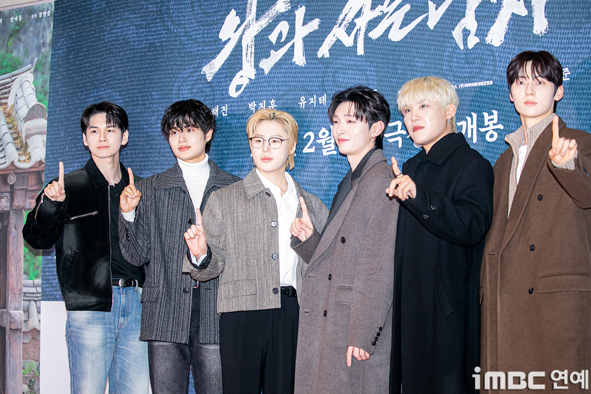 워너원 옹성우 이대휘 하성운 윤지성 박우진 황민현이 27일 오후 서울 잠실 롯데시네마 월드타워점에서 열린 영화 ‘왕과 사는 남자’ VIP시사회에 참석해 포즈를 취하고 있다. ‘왕과