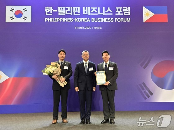 구혁서 LX인터내셔널 대표오른쪽가 4일 마닐라 콘래드 호텔에서 열린 ‘한-필리핀 비즈니스 포럼’에서 필리핀 라푸라푸 구리 광산의 성공적인 환경복구 공로…