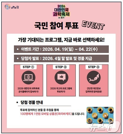 기대되는 프로그램 투표 예시화면과학기술정보통신부 제공과학기술정보통신부와 한국과학창의재단은 '2026 대한민국 과학축제 with 대한민국과학기술대…