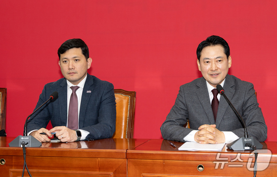 장동혁 국민의힘 대표가 12일 서울 여의도 국회에서 케빈 김 주한 미국 대사대리를 접견, 인사말하고 있다. 2025.12.12/뉴스1 News1 이승배 기자…