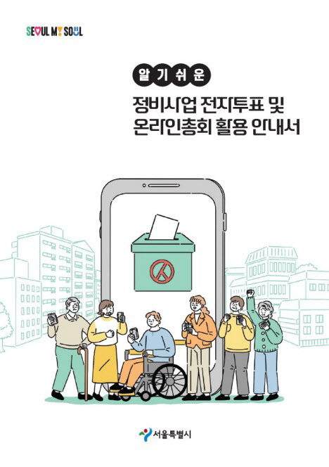 [이데일리 김형환 기자] 전자투표와 온라인총회를 시행하는 서울 지역 정비사업 조합이 최대 1000만원을 지원받게 된다. 정비사업 전자투표·온라인총회 활용 안내서. (사진=서울시 제