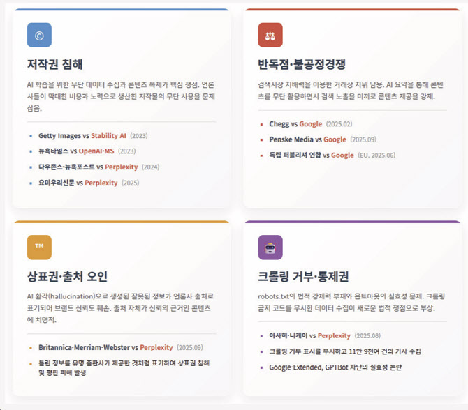 AI 저작권 소송, AI 기업 ‘2대 1’ 승소… 뉴스·법률정보는 여전히 침해 위험