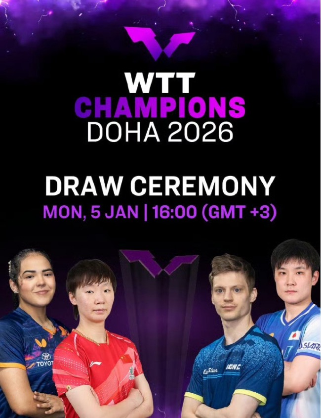 WTT 공식 포스트 (MHN 이현아 기자) 중국 탁구 대표팀이 2026년 첫 국제 대회인 WTT 도하 챔피언스(1월 7~11일)에 출전하기 위해 카타르 도하로 출발했다. 지난 5일
