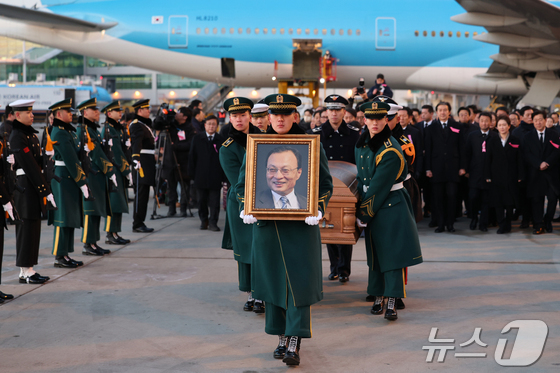 베트남 출장 중 심근경색으로 쓰러져 별세한 이해찬 민주평화통일자문회의 수석부의장전 국무총리의 시신이 27일 오전 인천국제공항에 도착, 빈소가 마련된 서…