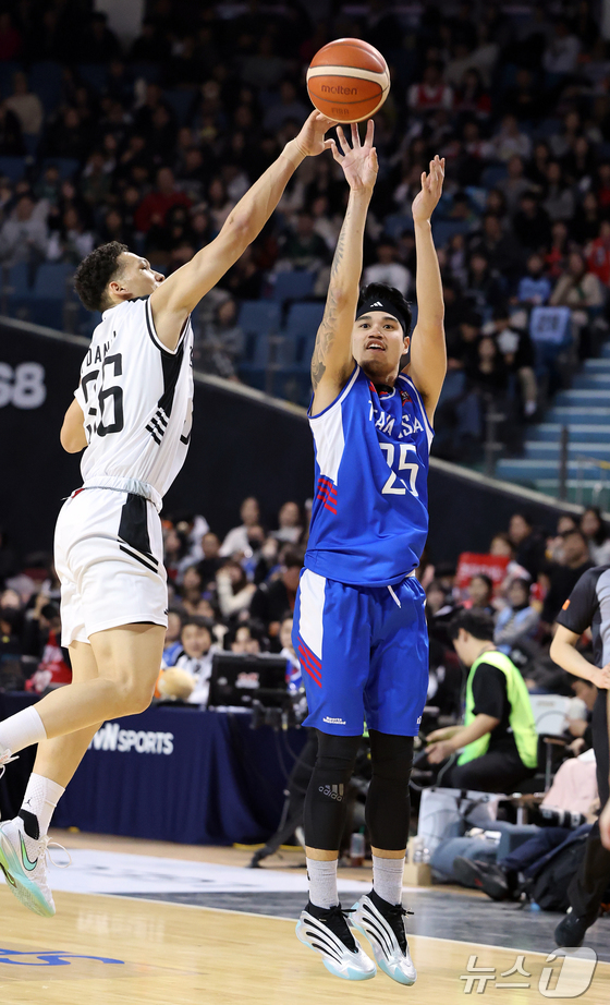 17일 오후 서울 송파구 잠실실내체육관에서 열린 2025-2026 LG전자 프로농구 올스타전 전야제 팀 아시아와 팀 루키의 경기, 팀 아시아 알빈 톨렌티노가 3점슛읊 던…