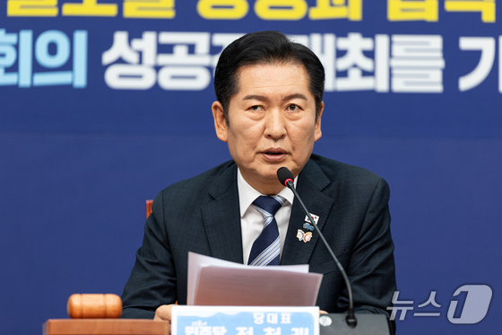 정청래 더불어민주당 대표가 일 서울 여의도 국회에서 열린 최고위원회의에서 모두발언하고 있다. ../뉴스 News 이승배 기자정청…