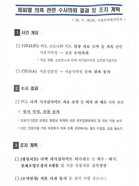 이데일리가 입수한 문건 [이데일리 김새미 기자] 의료기기업체 피씨엘(241820)이 윤석열 대통령 취임식에 대량 공급했던 코로나19 타액 자가검사 진단키트가 임상 자료 조작 의혹