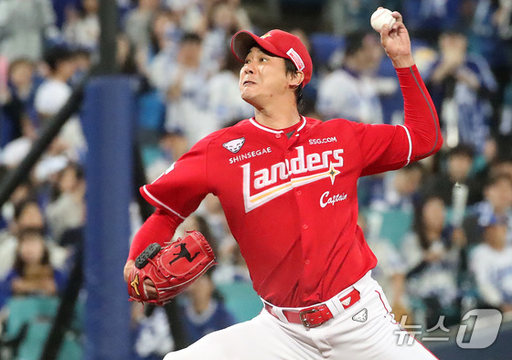 일 오후 대구 삼성라이온즈파크에서 열린 프로야구 신한 SOL뱅크 KBO 준플레이오프 차전 삼성 라이온즈와 SSG 랜더스의 경기에 SSG 선발 김광현이 역투…