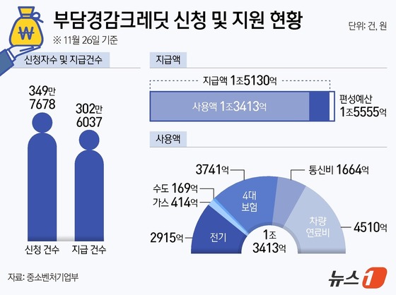 중소벤처기업부 부담경감크레딧 신청 및 지급 현황 News1 양혜림 디자이너소상공인에게 공과금과 보험료, 통신요금 등에 사용할 수 있는 50만 원을 지…