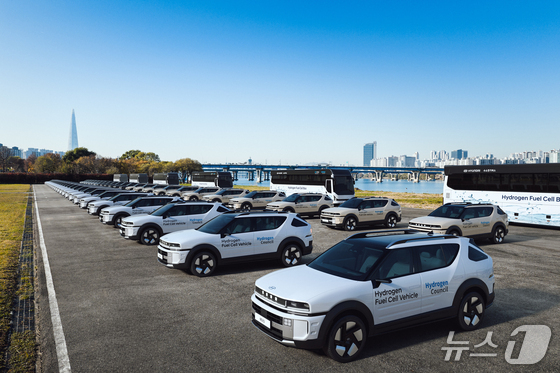 수소위원회 CEO Summit에 지원되는 디 올 뉴 넥쏘와 유니버스 수소전기버스의 모습현대차그룹 제공현대자동차005380그룹이…