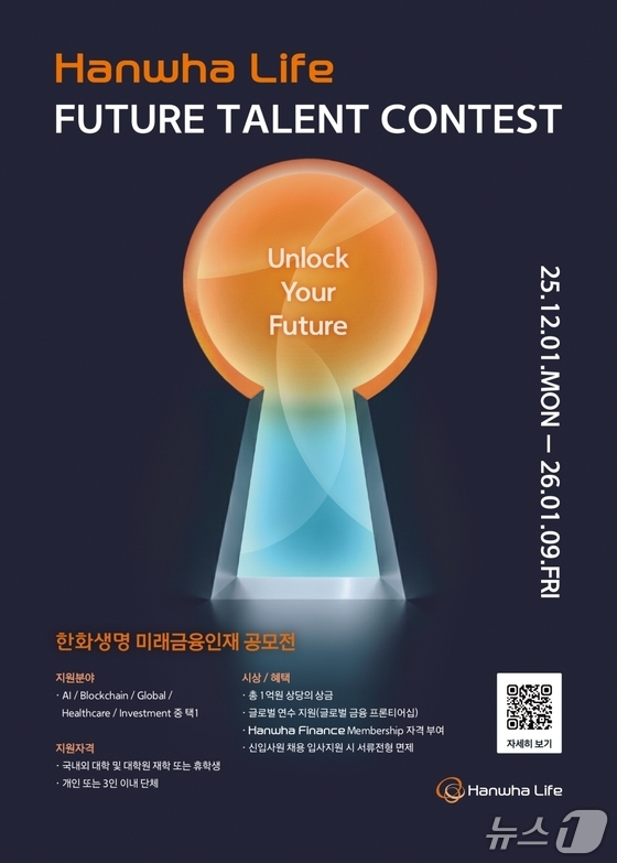 한화생명 '2025 미래금융인재 공모전' 모집 포스터/사진제공=한화생명한화생명은 '2025 미래금융인재 공모전'을 첫 개최하고, 미래 금융 분야 인재 모집에 나선…