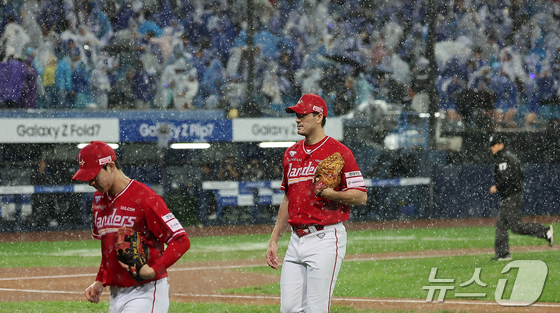 SSG 앤더슨, 공 4개 던졌는데…개시 13분 만에 폭우 중단[준PO3]