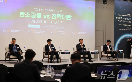 5일 오후 서울 용산구 나인트리 프리미어 로카우스 호텔 용산에서 열린 '2025 뉴스1 미래에너지포럼'NFEF 2025에서 패널들이 'AI 기술이 만든…