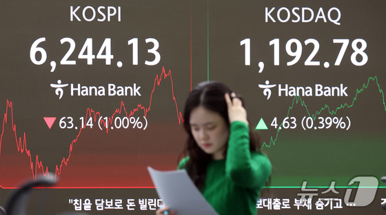 [이데일리 이혜라 기자] [속보]코스피, 1.00% 내린 6244.13 마감…코스닥 0.39%↑ (사진=뉴스1)