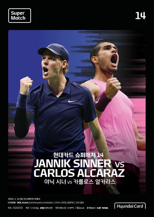 [OSEN=강필주 기자] 전 세계 테니스 팬들의 시선이 인천으로 향한다. 현대카드는 3일 "내년 1월 10일 인천 인스파이어리조트 아레나에서 '현대카드 슈퍼매치 14 – 야닉 시너