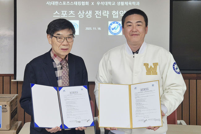 [OSEN=홍지수 기자] 우석대 생활체육학과가 스포츠 상생 발전을 위해 대한스포츠스태킹협회와 업무협약을 체결했다. 지난 18일 진천캠퍼스 창조관 4층 세미나실에서 열린 업무협약 체