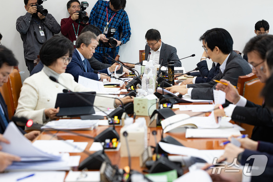 한병도 국회 예산결산특별위원장이 19일 서울 여의도 국회에서 열린 제429회 국회정기회 제3차 예산안등조정소위원회에서 의사봉을 두드리고 있다. 2025…
