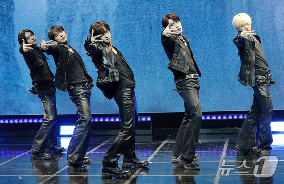 그룹 키빗업이 8일 서울 마포구 NOL씨어터 합정 동양생명홀에서 열린 첫 EP 앨범 ‘KEYVITUP키빗업’ 쇼케이스에서 타이틀 곡을 선보이고 있다. …