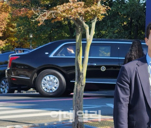 [경주=이데일리 김성진 강신우 이배운 기자] 2025 아시아태평양경제협력체(APEC) CEO 서밋이 열린 29일 경주 예술의 전당. 오후 12시 30분께 도널드 트럼프 대통령이 입