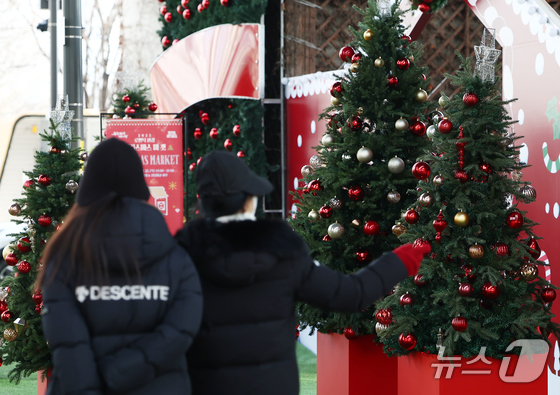 19일 오후 서울 뚝섬한강공원 자벌레 서울생각마루 인근에서 열린 2025 로맨틱 한강 크리스마스 마켓에 트리 조형물이 놓여 있다. 2025.12.19/뉴스1 …