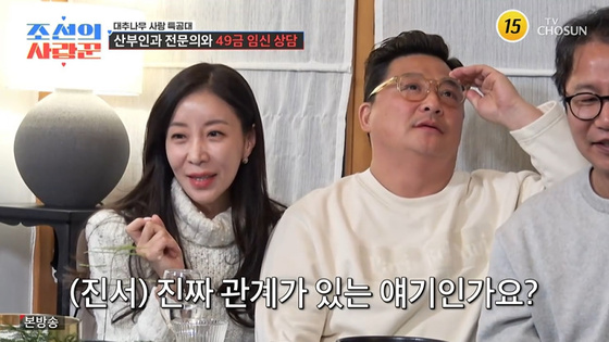 TV조선 '조선의 사랑꾼' 화면 캡처원진서의 '19금' 질문에 윤정수가 당황했다.23일 오후 방송된 TV조선 예능 프로그램 '조선의 사랑꾼'에서는 간절히 임신을 …