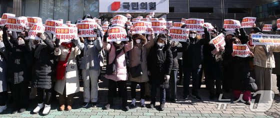 21일 오후 대구 수성구 국민의힘 대구시당 앞에서 한동훈 전 대표 지지자들이 한 전 대표의 당원 게시판 사건과 관련한 당 징계를 철회할 것을 촉구하는 집회를 열고 있다.…