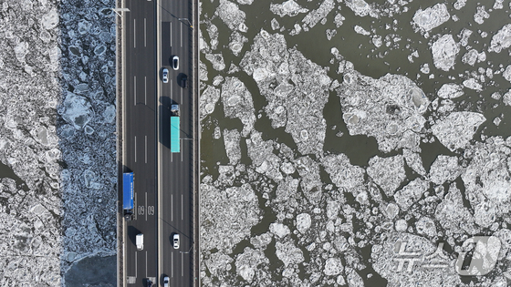 연일 한파가 이어지고 있는 23일 경기 김포시 일산대교 일대 한강 위에 유빙이 떠다니고 있다./뉴스1 News1 김도우 기자1월 마지막 일요일인 25…