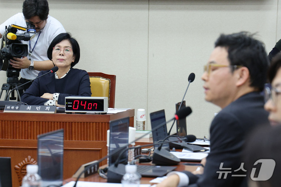 최민희 위원장이 일 서울 여의도 국회 과학기술정보방송통신위원회에서 열린 방송미디어통신위원회 등에 대한 국정감사에서 박정훈 국민의힘 의원의 발언을 듣고 있다. …