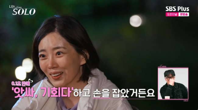 방송 시청 후 작성된 리뷰 기사입니다. [OSEN=박하영 기자] ‘나는 SOLO’ 28기 정희가 광수의 손을 몰래 잡았다. 29일 방송된 SBS Plus·ENA 예능 ‘나는 SOL