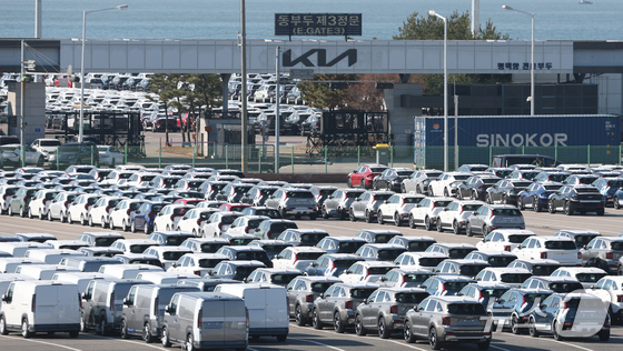 4일 경기 평택시 포승읍 평택항에 수출용 차량이 세워져 있다. 한국산 자동차 관세를 15%로 인하하는 내용이 3일현지시간 미국 정부 관보에 게재됐다. …