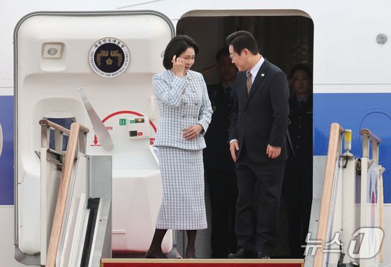 이재명 대통령과 김혜경 여사가 17일 오전 주요 20개국G20 정상회의 참석을 계기로 아프리카와 중동 등 4개국 순방을 위해 경기 성남 서울공항에서 공…