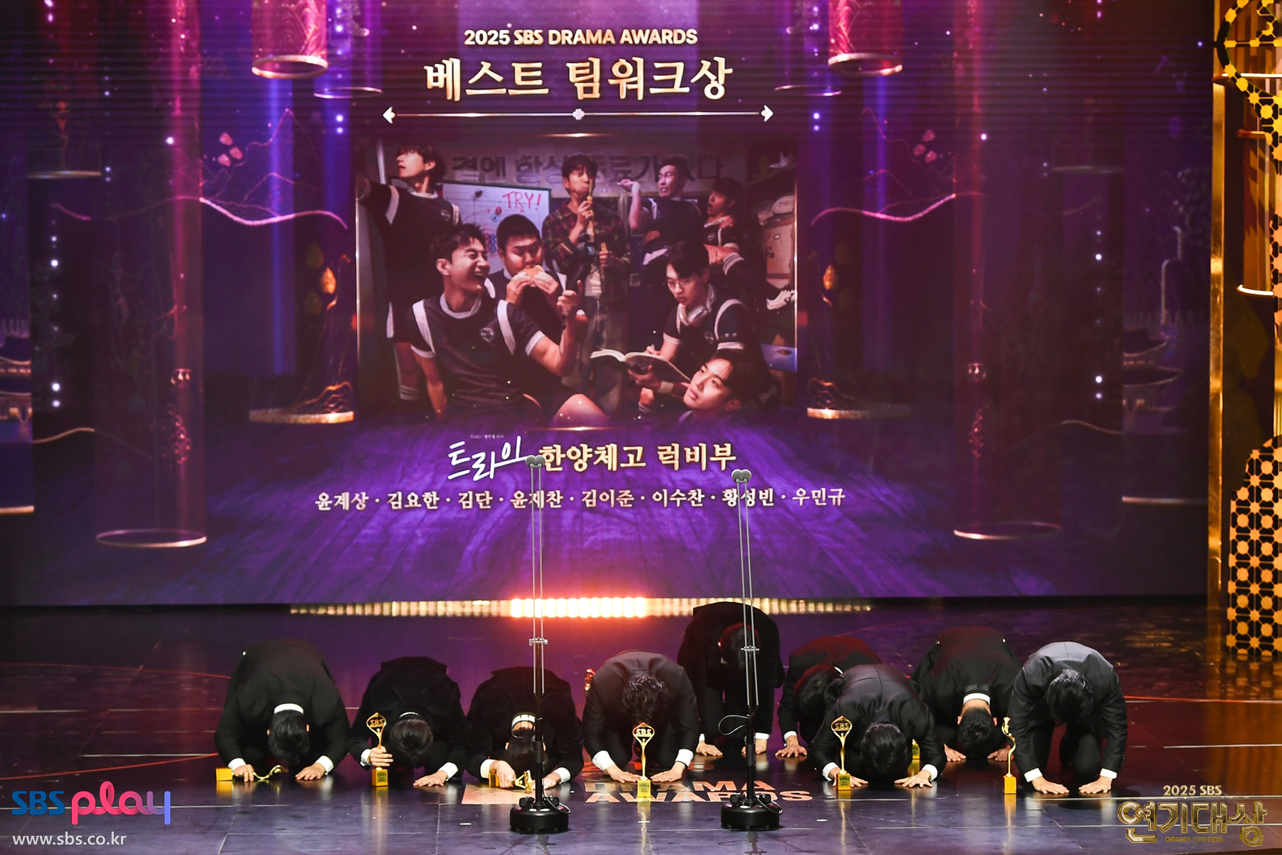 'SBS 연기대상' '트라이' 한양체고 럭비부, 베스트 팀워크상 '큰절'