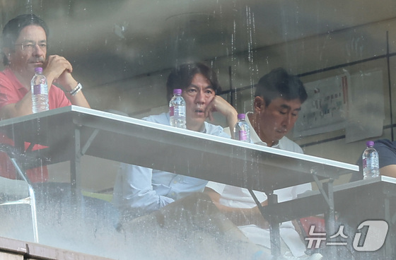 홍명보 축구 국가대표팀 감독이 29일 오후 서울 마포구 서울월드컵경기장에서 열린 하나은행 K리그1 2024 32라운드 FC서울과 수원FC의 경기를 관람하고 있다. 홍명보…