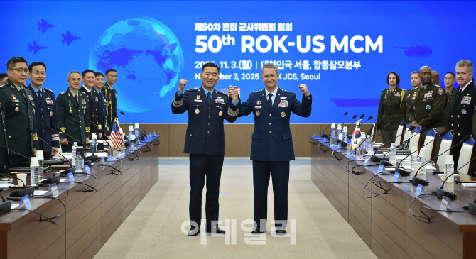 [이데일리 김관용 기자] 진영승 한국 합참의장과 존 대니얼 케인 미국 합참의장이 3일 서울 용산구 합참 청사에서 제50차 한미 군사위원회 회의(MCM)를 개최하고 한미동맹 현대화와