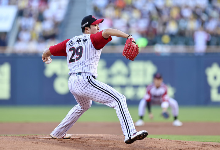 LG 트윈스 손주영 (MHN 이규원 기자) 대전으로 무대를 옮겨가 3차전을 치르는 LG 트윈스가 1, 2차전과 같은 라인업을 발표했다. 한화 이글스는 라인업에 변화를 줬다. LG는