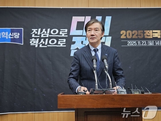 조국혁신당 당 대표에 출마한 조국 전 비상대책위원장이 17일 전북 전주시 전북도의회 브리핑룸에서 기자회견을 하고 있다. 2025.11.17/뉴스1 News1…