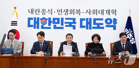 한병도 더불어민주당 원내대표가 3일 서울 여의도 국회에서 열린 원내대책회의에서 모두 발언을 하고 있다. 2026.3.3 뉴스1 유승관 기자문금주 더불…