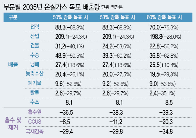 전력·산업·수송 탈탄소 '미션 임파서블'…산업계 하한 50%안 확정에 '사활'
