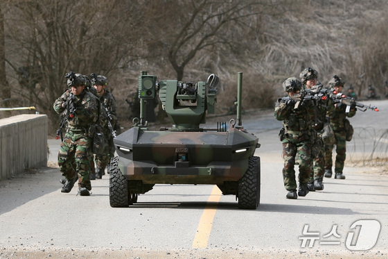 12일 경기 파주시 무건리 훈련장에서 2025 FS/TIGER 일환으로 실시된 유무인 복합전투체계 활용 '한미연합 WMD대량살상무기 제거훈련'에서 25…