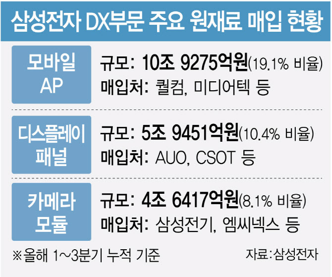 [이데일리 김정남 기자] 삼성전자의 올해 1~3분기 모바일 애플리케이션 프로세서(AP) 구매비가 역대 최대치를 기록했다. 모바일 AP는 ‘스마트폰 두뇌’로 불리는 핵심 부품이다.