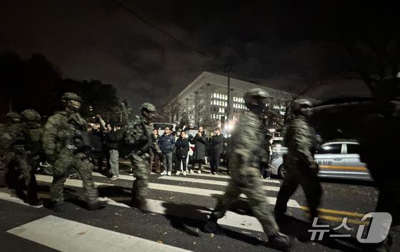 새벽 무장 계엄군이 국회를 나서고 있다. 2024.12.4/뉴스1 News1 안은나 기자12·3 비상계엄 1년인 3일, 교원단체들은 지속적인 민주주의…