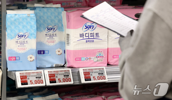 서울 이마트 용산점에 여성용품이 진열돼 있다. 2026.2.19 뉴스1 박지혜 기자정부가 오는 7월부터 모든 여성을 대상으로 공공 생리대를 무상 지원…