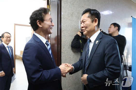정청래 더불어민주당 대표가 12일 서울 여의도 국회에서 전재수 더불어민주당 의원을 접견하고 있다. 2026.3.12 뉴스1 신웅수 기자전재수 더불어민…