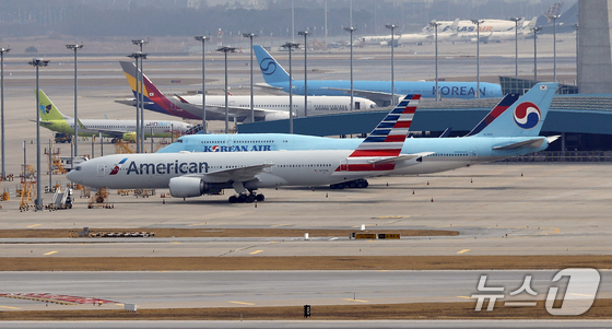 중동 사태로 국제유가와 환율이 오르면서 비용 부담이 커진 항공사들이 운항편을 줄이고 요금을 인상하는 등의 대책이 나오고 있는 가운데 30일 인천국제공항 계류장에 항공기들…