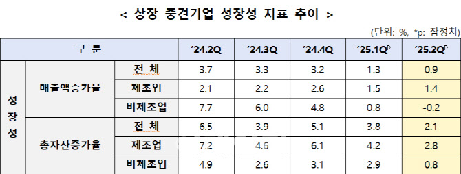 [이데일리 박철근 기자] 지난 2분기에 상장 중견기업의 성장성이 약화한 것으로 나타났다. 한국중견기업연합회가 16일 발표한 ‘2025년 2분기 상장 중견기업 경영 분석’ 결과에 따